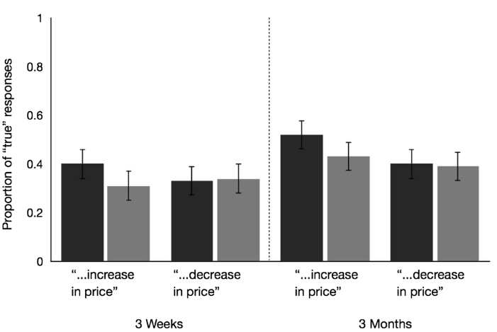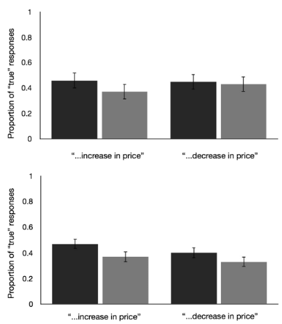 Iels ont demandé à leurs participant·e·s évaluer si le prix de certains produits (comme le gabardine et le benzène) allaient évoluer dans trois mois. Un groupe a évalué si le prix allait augmenter, tandis qu'un autre a jugé s'il allait diminuer, avec la moitié des scénarios accompagnés d'une photo du produit.