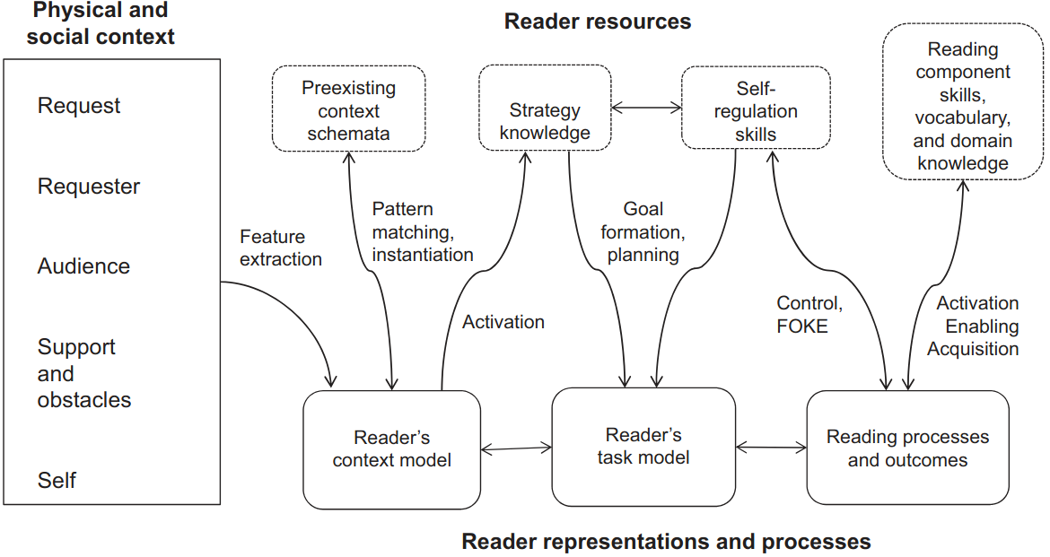 Tiré de Rouet, J. F., Britt, M. A., & Durik, A. M. (2017). RESOLV: Readers' representation of reading contexts and tasks. Educational Psychologist, 52(3), 200-215. https://doi.org/10.1080/00461520.2017.1329015